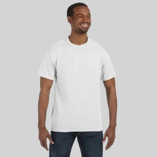 Features 100% preshrunk cotton tee. Seamless collar. Fully double-needle stitched. Taped shoulder to shoulder.