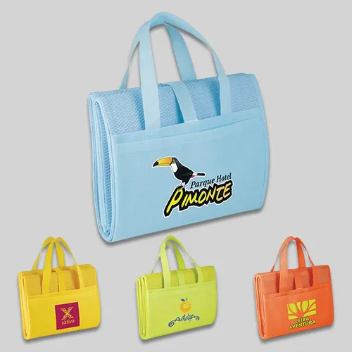 Features Folding beach mat with double reinforced carry handles. Side open top pocket. Velcro strap closure to make item portable when not in use as mat. Includes inflatable pillow. Unfolded blanket size : 35" W x 71" L.