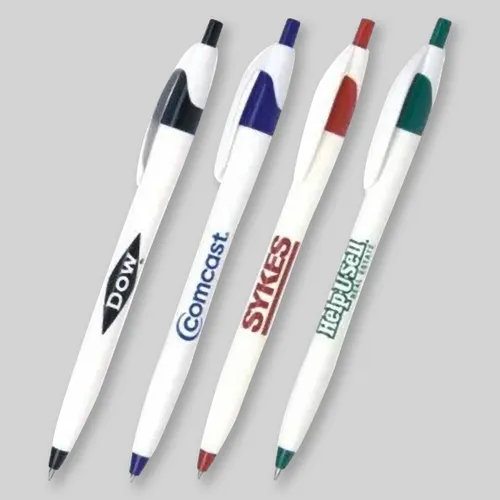 | Features | Crisp white barrels are accented with bright classic colors to make your imprint pop. |
