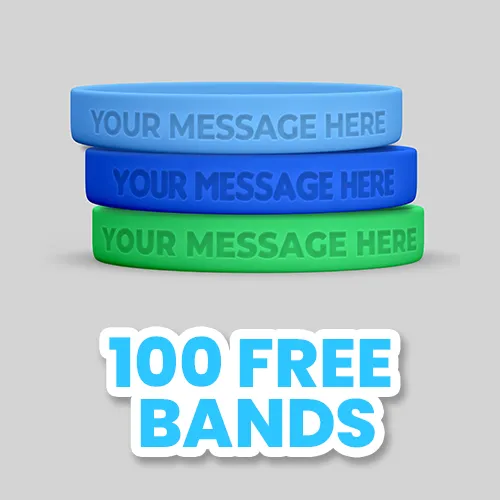 Metallic Wristband Color: $0.30(P) Add Another Size: $80 (P) Internal message Printed: $130 on (P) 0.08 on (P) Upgrade to Swirl: $0.10(P) (View Example) Upgrade to Segmented: $0.10(P) (View Example) Upgrade to Glow in the Dark: $0.10(P) (View Example) Upgrade to Figured Wristband(Min Qty 100): $160(P) plus $0.20 Run Charge(P) (View Example) Add lndividual Bag: $0.08/ each(P) Custom Printed Bag: $0.16/each(P)(For Eg: logo printed on each individual wrapper Min 10000) Custom Packaging: Setup - $380(P) & Runcharge - $0.16/each(P)(For Eg:- 10000 bands : packed in 50 in each bag) Make it a Keychain: $0.40/each (P) Digital Proof: $20(P) (Required) |