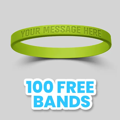 Metallic Wristband Color: $0.30(P) Add Another Size: $80 (P) Internal message Printed: $130 on (P) 0.08 on (P) Upgrade to Swirl: $0.10(P) (View Example) Upgrade to Segmented: $0.10(P) (View Example) Upgrade to Glow in the Dark: $0.10(P) (View Example) Upgrade to Figured Wristband(Min Qty 100): $160(P) plus $0.20 Run Charge(P) (View Example) Add lndividual Bag: $0.08/ each(P) Custom Printed Bag: $0.16/each(P)(For Eg: logo printed on each individual wrapper Min 10000) Custom Packaging: Setup - $380(P) & Runcharge - $0.16/each(P)(For Eg:- 10000 bands : packed in 50 in each bag) Make it a Keychain: $0.40/each (P) Digital Proof: $20(P) (Required) | ||||||||||||||||||