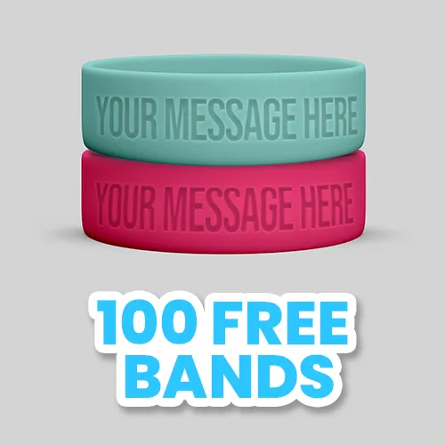 Metallic Wristband Color: $0.30(P) Add Another Size: $80 (P) Internal message Printed: $130 on (P) 0.08 on (P) Upgrade to Swirl: $0.10(P) (View Example) Upgrade to Segmented: $0.10(P) (View Example) Upgrade to Glow in the Dark: $0.10(P) (View Example) Upgrade to Figured Wristband(Min Qty 100): $160(P) plus $0.20 Run Charge(P) (View Example) Add lndividual Bag: $0.08/ each(P) Custom Printed Bag: $0.16/each(P)(For Eg: logo printed on each individual wrapper Min 10000) Custom Packaging: Setup - $380(P) & Runcharge - $0.16/each(P)(For Eg:- 10000 bands : packed in 50 in each bag) Make it a Keychain: $0.40/each (P) Digital Proof: $20(P) (Required) | ||||||||||||||||||||