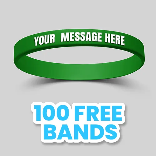 Metallic Wristband Color: $0.30(P) Add Another Size: $80 (P) Internal message Printed: $130 on (P) 0.08 on (P) Upgrade to Swirl: $0.10(P) (View Example) Upgrade to Segmented: $0.10(P) (View Example) Upgrade to Glow in the Dark: $0.10(P) (View Example) Upgrade to Figured Wristband(Min Qty 100): $160(P) plus $0.20 Run Charge(P) (View Example) Add lndividual Bag: $0.08/ each(P) Custom Printed Bag: $0.16/each(P)(For Eg: logo printed on each individual wrapper Min 10000) Custom Packaging: Setup - $380(P) & Runcharge - $0.16/each(P)(For Eg:- 10000 bands : packed in 50 in each bag) Make it a Keychain: $0.40/each (P) Digital Proof: $20(P) (Required) | ||||||||||||||||||