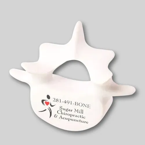 | Material & Description | - The Vertebrae Stress Ball is perfect for chiropractors and back specialists! These squeezable vertebrae shaped stress relievers are custom printed with your logo and/or text making them ideal for your next marketing or internal event. Being inexpensive, fast to print and loved by recipients you simply cannot go wrong. Order online or contact us by phone, live chat or email for more personalized service.