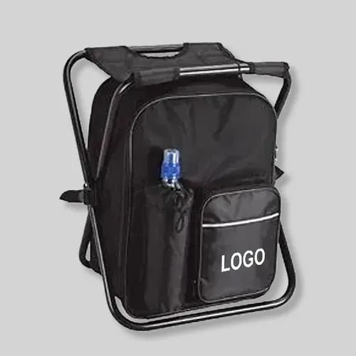 Features This 24 can capacity cooler has an integrated folding chair. It is made of durable 600D material and features a zippered main compartment with PEVA lining, adjustable padded shoulder straps, zippered front pocket, and a water bottle pocket. Suggested max weight for chair 270 lbs. Folds flat for easy storage.