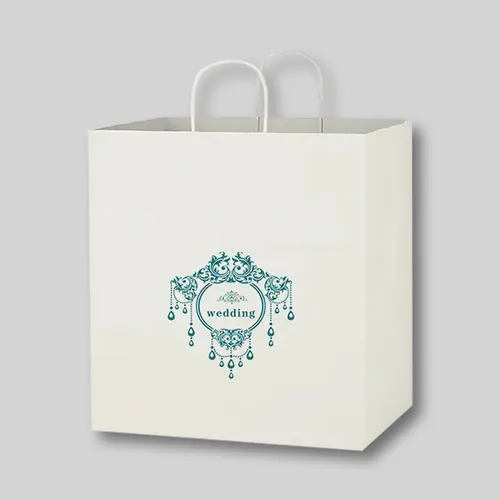 Material & Description Budget Custom Kraft Paper White Shopping Bags - 14-x-15