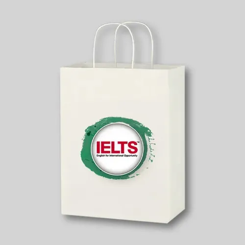 Budget Custom Kraft Paper White Shopping Bags-10-x-13 - BG
