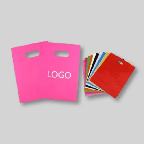 Material & Description PE shopping bag is made of durable polyethylene plastic and feature a die cut handle.
